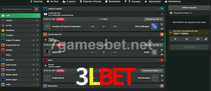 O 3Lbet oferece uma grande seleção de opções de apostas em e-sports com probabilidades competitivas